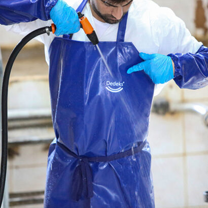DEDEKS® Sağım ve Yıkamacı önlüğü tarım, ev ve bahçe ile ilgili tüm işler için ideal olarak kıvrılmaya dayanıklı bir yapıdadır.
